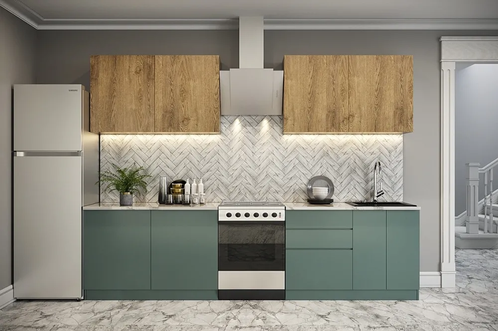Ручки, столешница, стеновая панель, мойка, смеситель и бытовая техника продаются отдельно.